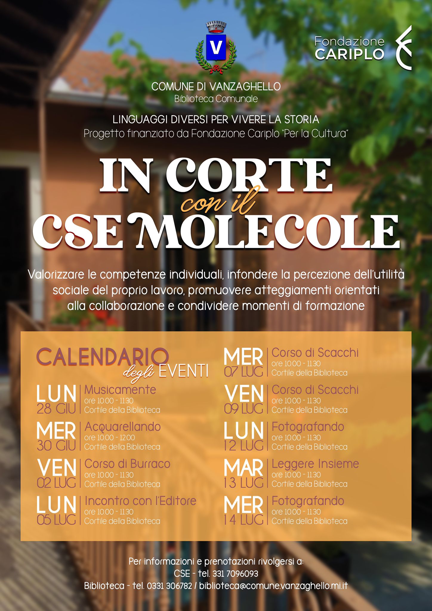 La cittadinanza è invitata a partecipare agli eventi, prenotandosi presso il CSE Molecole o presso la Biblioteca.