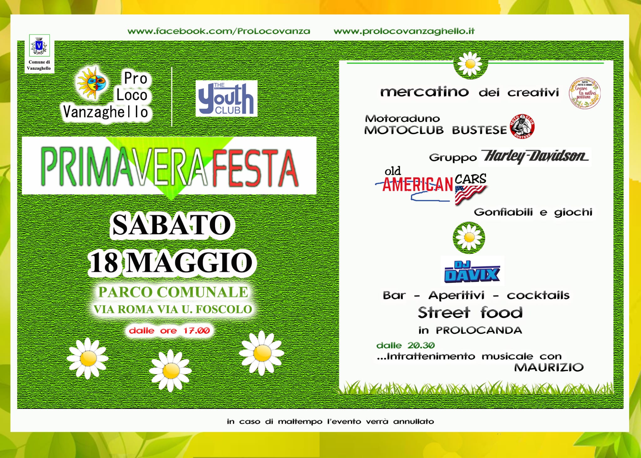 La Pro Loco di Vanzaghello organizza la “PRIVAVERAFESTA” il 18 maggio 2024 dalle ore 17,00, presso il Parco Comunale di Via Roma, 24.