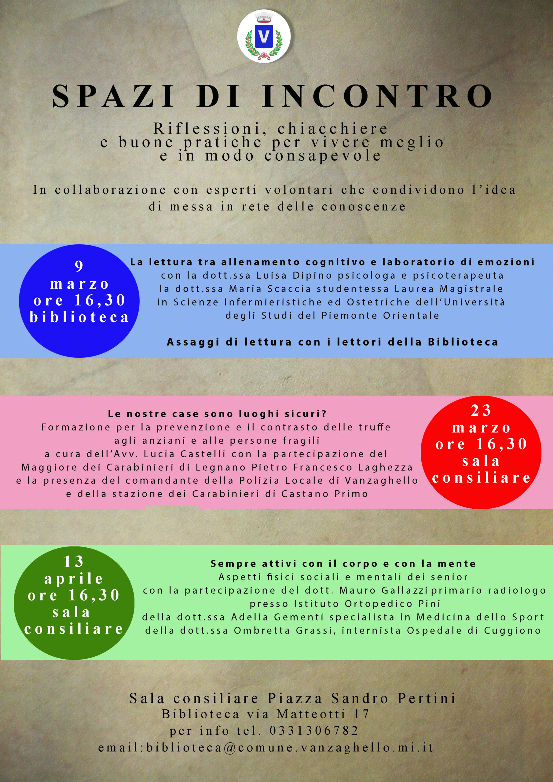 Incontri in collaborazione con esperti volontari che condividono l’idea di messa in rete delle conoscenze, rivolti a tutta la popolazione, al fine di