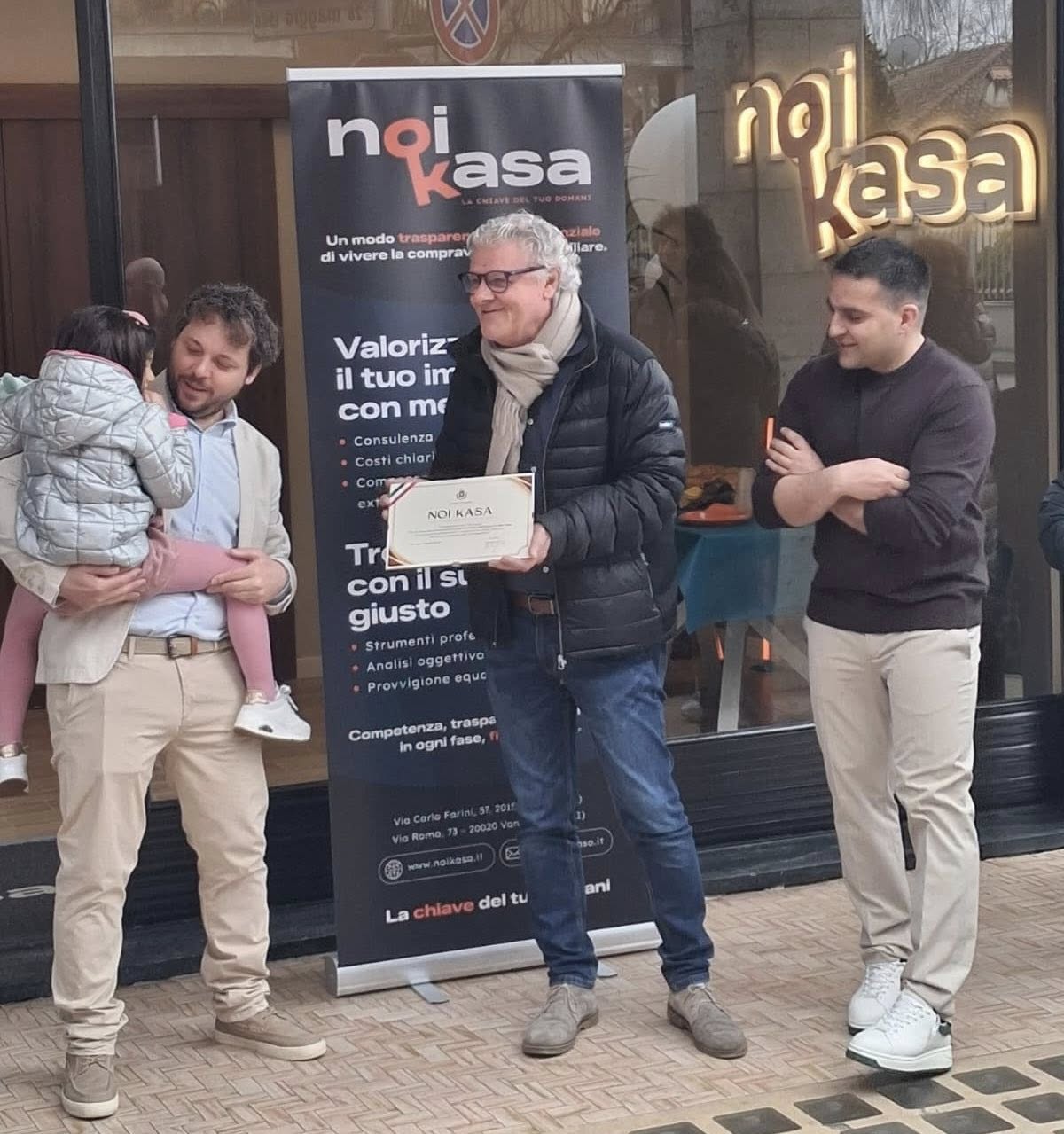 Sabato scorso (28 Febbraio) taglio del nastro per l’agenzia immobiliare “Noi Kasa”, alla presenza del Sindaco Arconte Gatti, degli Assessori Doris Giugliano e Claudio Zara e del Consigliere Comunale Emanuele Gatti, che hanno voluto dare, a nome di tutta la Comunità Vanzaghellese, il benvenuto alla nuova attività, lasciando un piccolo pensiero, una pergamena, in segno di augurio.